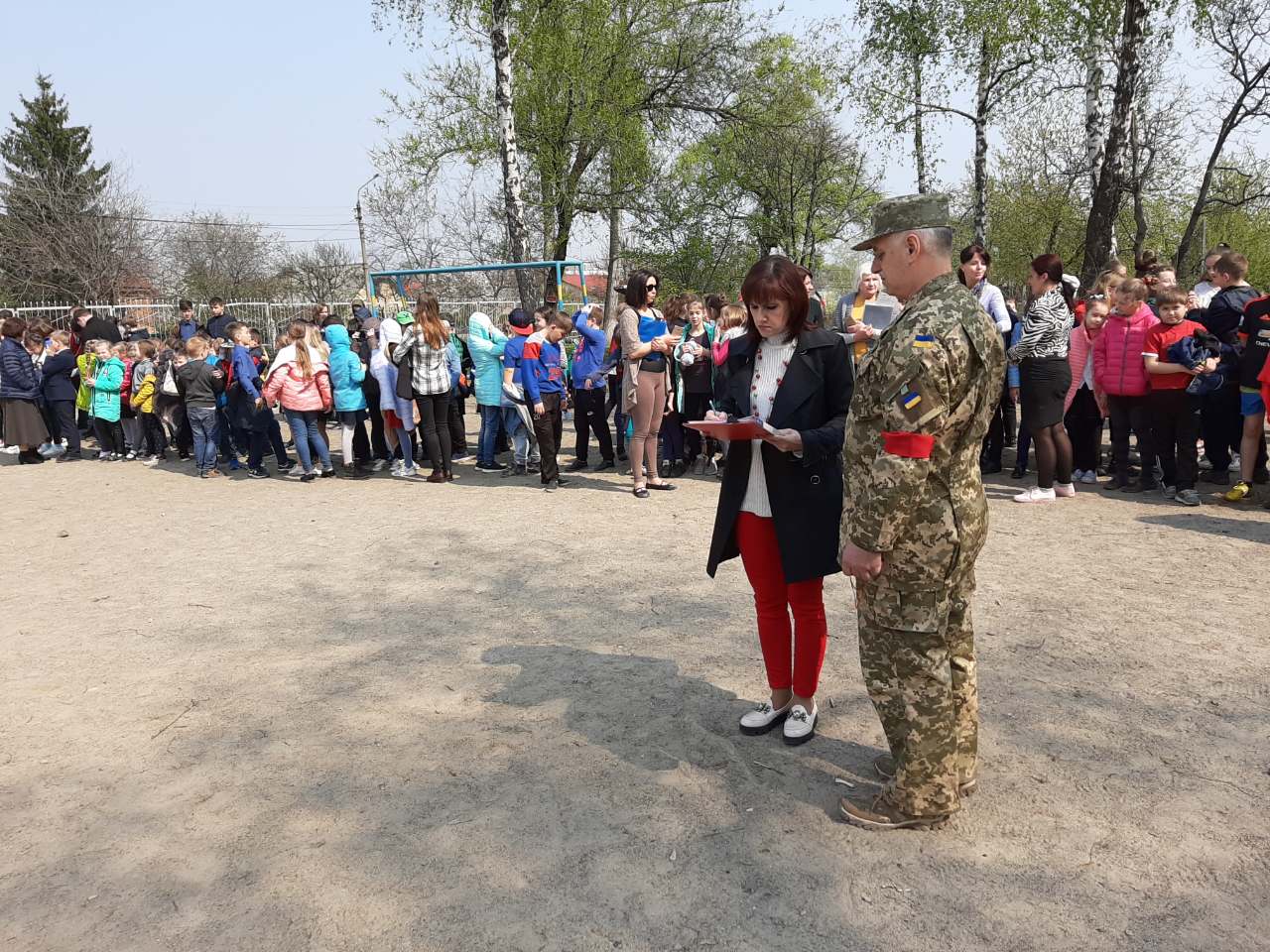 На шкільному подвір'ї було проведено загальношкільну лінійку для учнів 1-11 класів за участю вчителів, класних керівників, штабу ЦЗ школи, оголошено результати квесту для 5-11 класів та підведено підсумки проведення Дня ЦЗ.